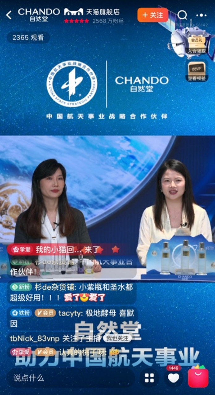 The livestream featured a special guest, Prof. Shang Peng, Council Member of the Chinese Society of Space Science and Academician of the International Academy of Astronautics, who provided an in-depth explanation of the significance of cargo spacecraft, the scientific value of space research, and the innovative opportunities aerospace technology brings to the beauty industry. Additionally, Jiang Shanshan, Senior Manager of the Technology Department at CHANDO’s R&D Center, shared the Group’s journey in aerospace skincare research and the development of its space yeast ingredients. Yin Cui, Senior Manager of New Product Planning at the R&D Center, elaborated on the development of HiMurchaSin®, the Himalayan polar yeast ingredient. Lin Mengchu, CHANDO Brand Product Manager, introduced the sixth-generation REJUVENATION REPAIRING ESSENCE and its groundbreaking “Anti-Fatigue Aging” technology, with HiMurchaSin® as the core innovation.